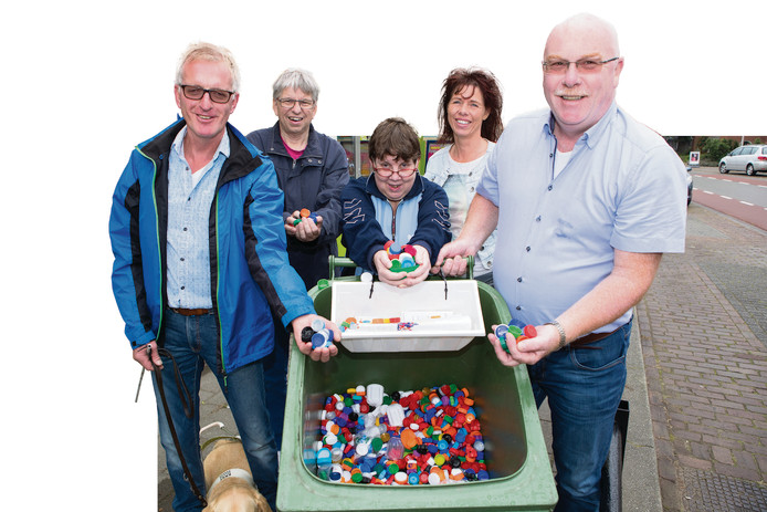 spaarders van de plastic doppen, vandaag worden de doppen weer opgehaald,